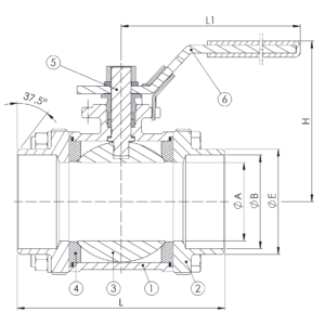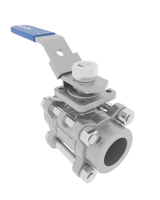 Three piece, full bore, Stainless Steel body ball valve with Stainless Steel ball and PTFE seat. Butt welded ends. With non-direct mounting pad.