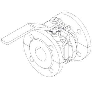 Two piece, full bore, RG5 body ball valve with Stainless Steel ball and CPTFE seat. Raised face flanges. With direct mounting pad.
