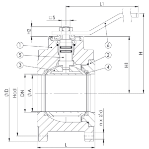 Two piece, full bore, short length, Cast Iron body ball valve with Hard Chromed Brass ball and CPTFE seat. Raised face flanges. With direct mounting pad.