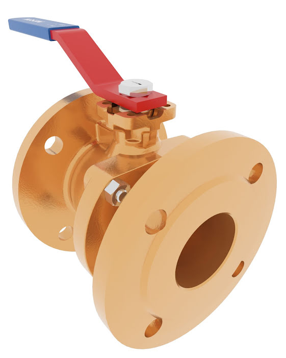 Two piece, full bore, RG5 body ball valve with Hard Chromed Brass ball and CPTFE seat. Raised face flanges. With direct mounting pad.