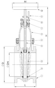 Gate valve used as shut off in cooling and sea water applications. Multiturn operation. Non-rising stem.
