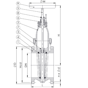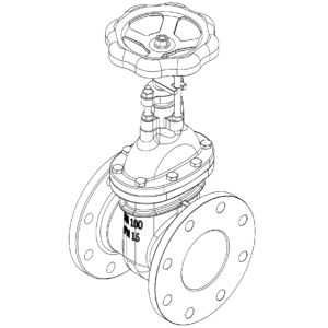 Nodular Cast Iron body gate valve, Bronze RG5 wedge, Bronze RG5 seat. Non rising stem with open/close indicator and bolted bonnet. Raised face flanges.