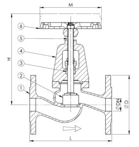 Globe valve with shut off , regulating or screw down non return (SDNR) function. Straight, rising stem valve with bolted bonnet and metal sealing. For warm sea water it is recommended to use a stem of zinc free bronze, CuSn6.