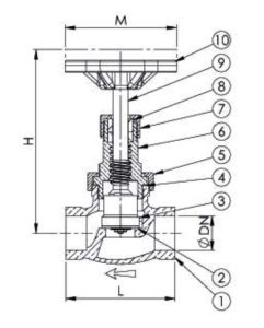 | 10 | Handwheel | Cast Iron | EN-JL1040 (GG25) |