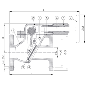 Straight type closable check valve. Cast Steel body. Soft sealing disc. Flat face flanges.