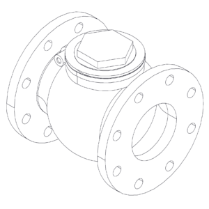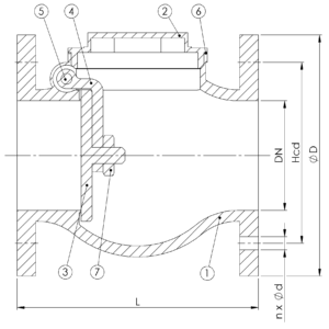 RG5 body swing check valve with metal sealing. Screwed cover. Flat face flanges.